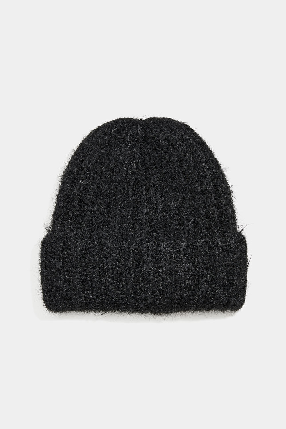 Tjock mössa med ribbstickad textur i ullblanding.