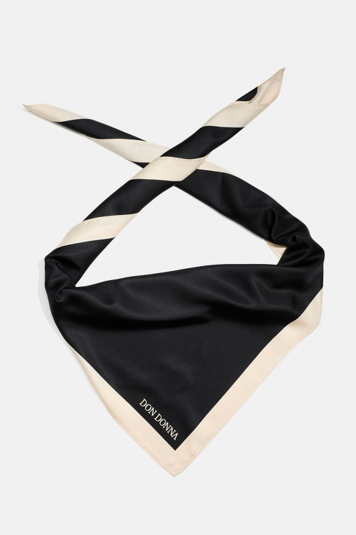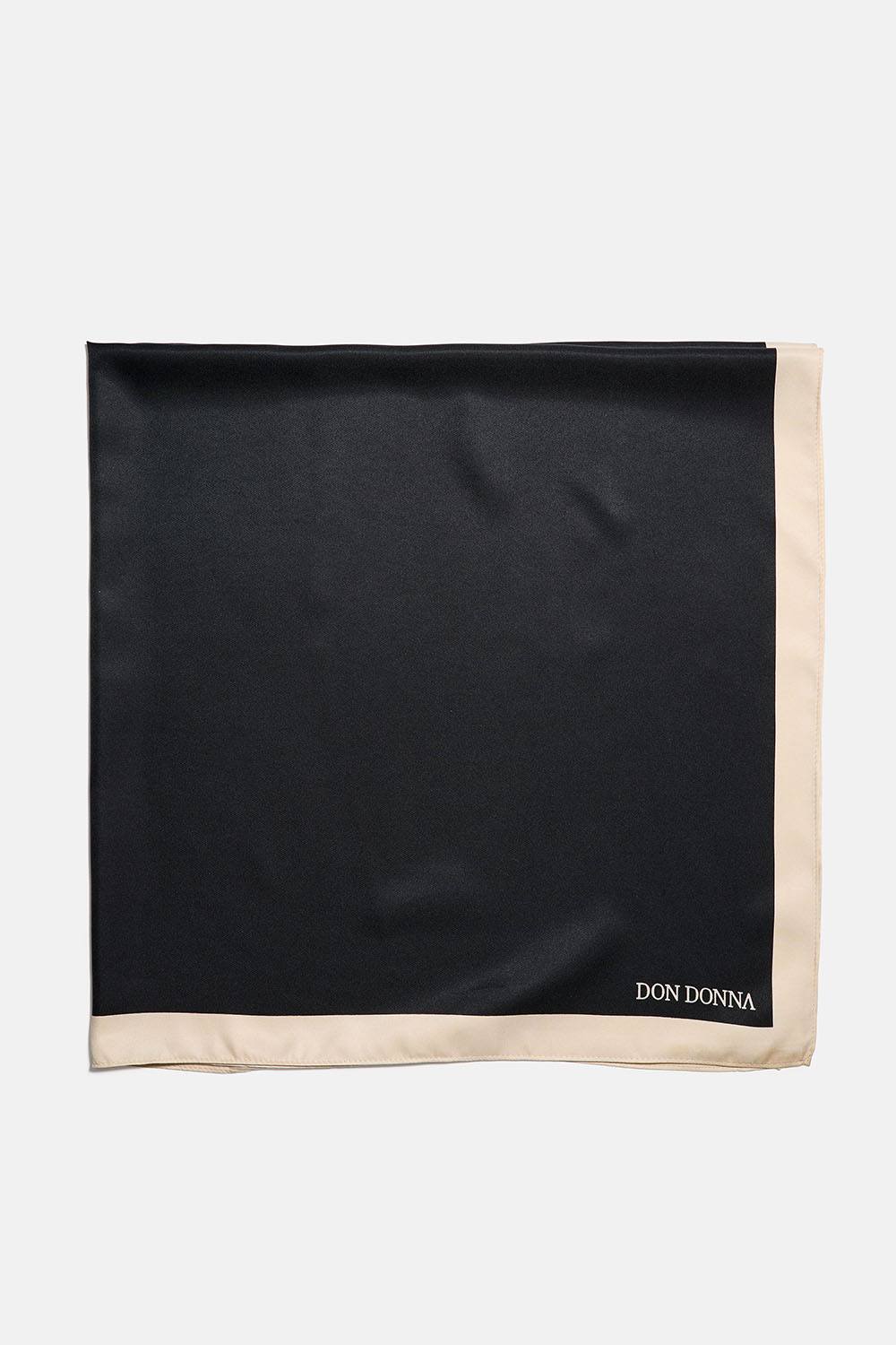 Kvadratisk scarf från Don Donna i svart sidenimitation med vita kanter.