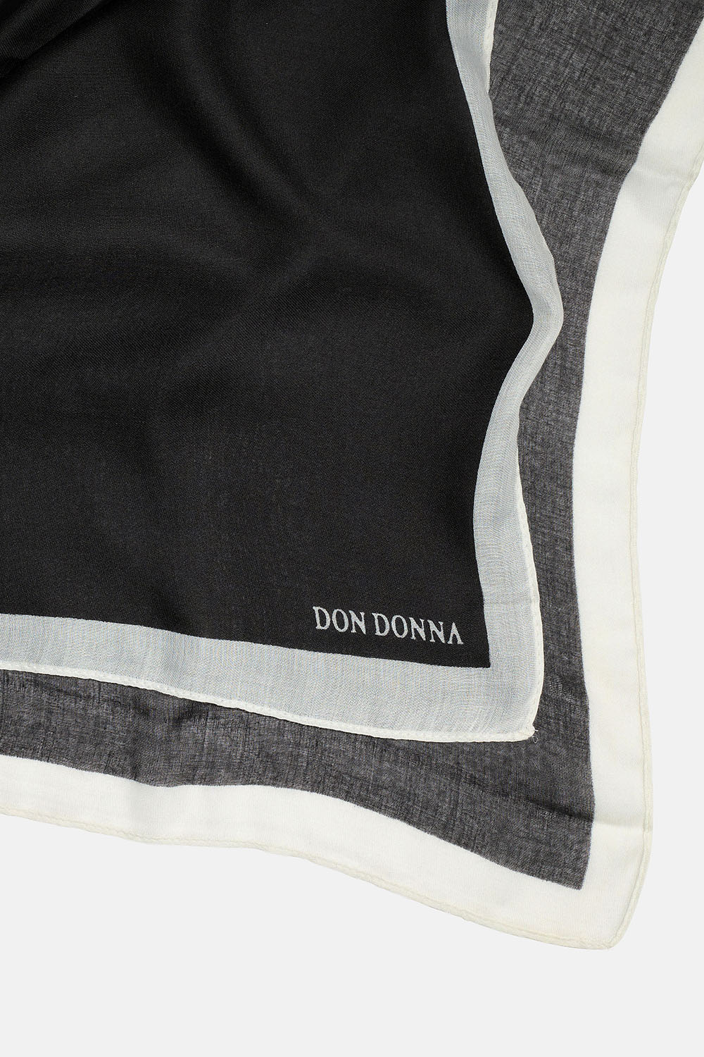Stor rektangulär svart sjal från Don Dinna med vita kanter i tunt material.
