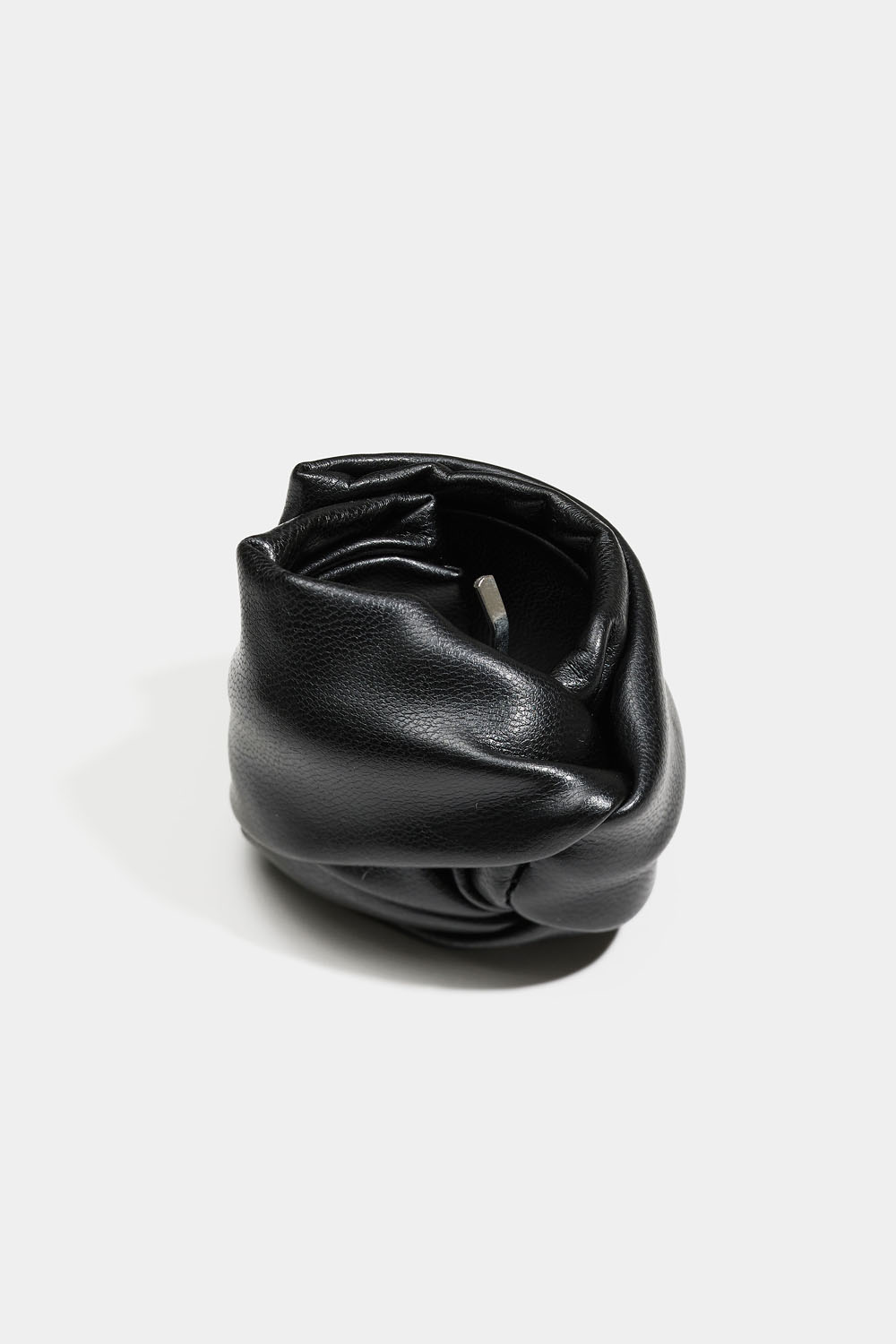 Toffsdekoration i imitationsläder med knutdesign. Den fästs i din hårtoffs med hjälp av en krok och en snap-band som lindas runt håret.