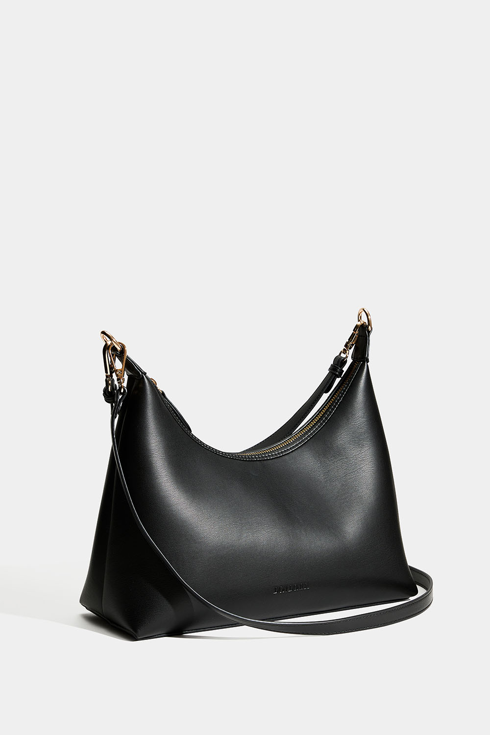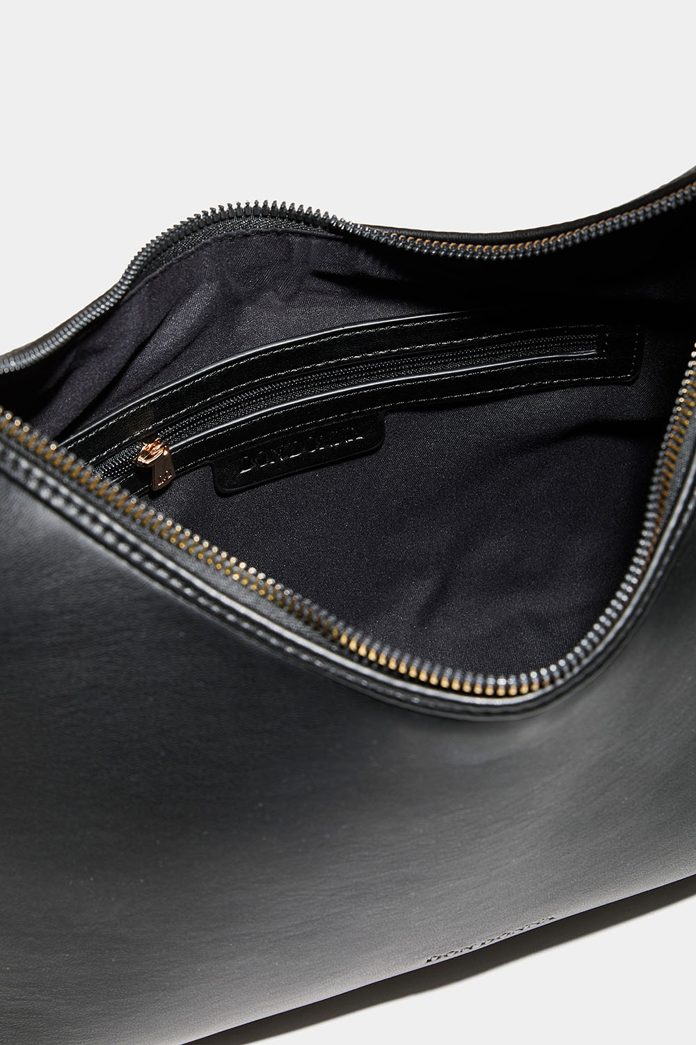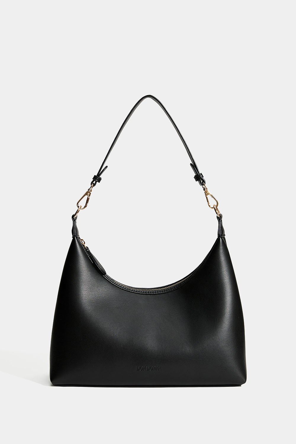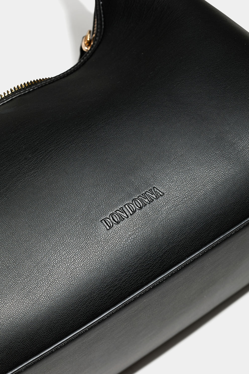 Svart axelremsväska i läderimitation från Don Donna i tidlös design med Don Donna-loggan präglad på framsidan. Det stora facket stängs med en gyllene dragkedja och innuti finns även ett mindre fack. Väskan har en avtagbar axelrem och kommer med en längre justerbar axelrem, så att man kan byte och bära den crossbody.