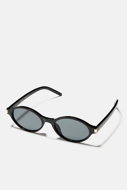 Nätta ovala solglasögon med svarta bågar och guldfärgad detalj. Ett par stilrena klassiker som snabbt blir en favorit.