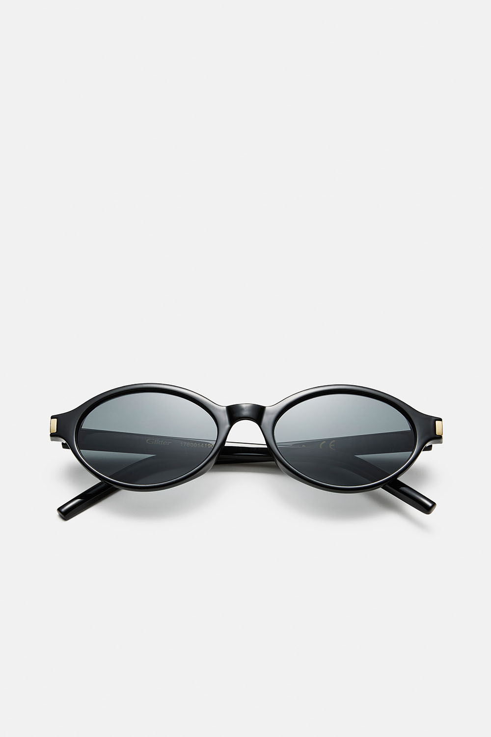 Svarta ovala solglasögon med guldfärgad detalj i gruppen Accessoarer / Solglasögon hos Glitter (176001419000)