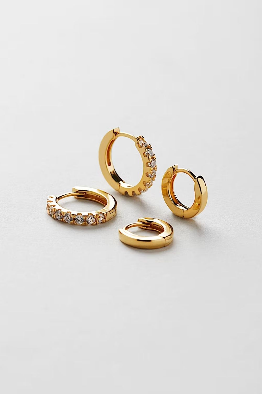 Flerpack hoops dekorerade med klara Cubic Zirconia stenar, förgyllda med äkta 24k guld och har en kärna av äkta sterling silver 925.