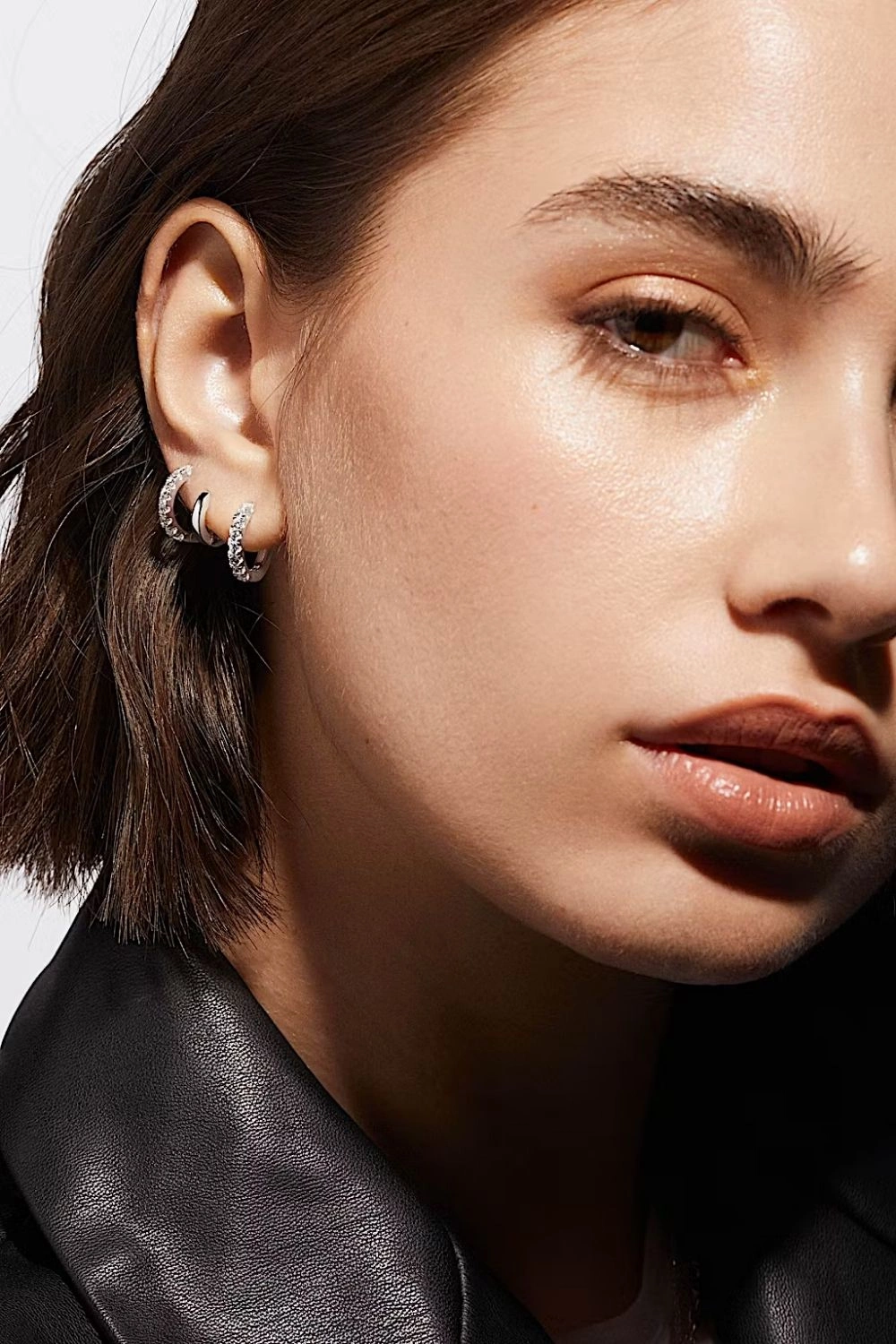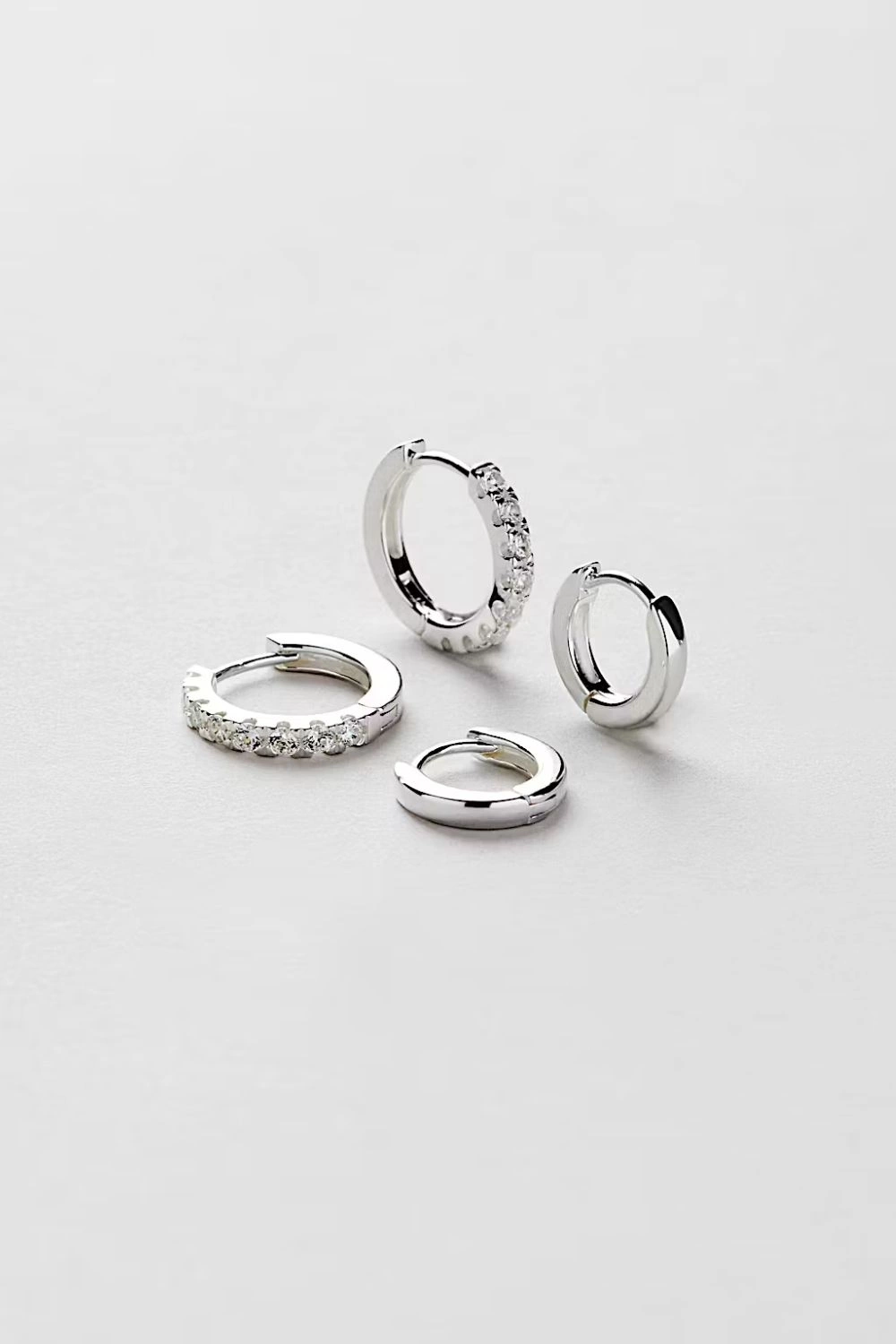 Flerpack hoops i äkta sterling silver 925, dekorerade med klara Cubic Zirconia stenar.