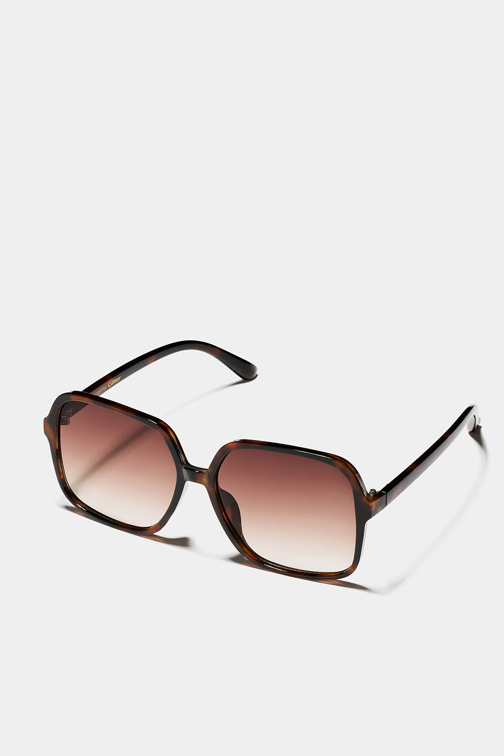 Oversize solglasögon med inspiration från 70-talets fyrkantiga design. Solglasögonen har bruna tonande linser och smala bågarna i brunt tortoisemönster.