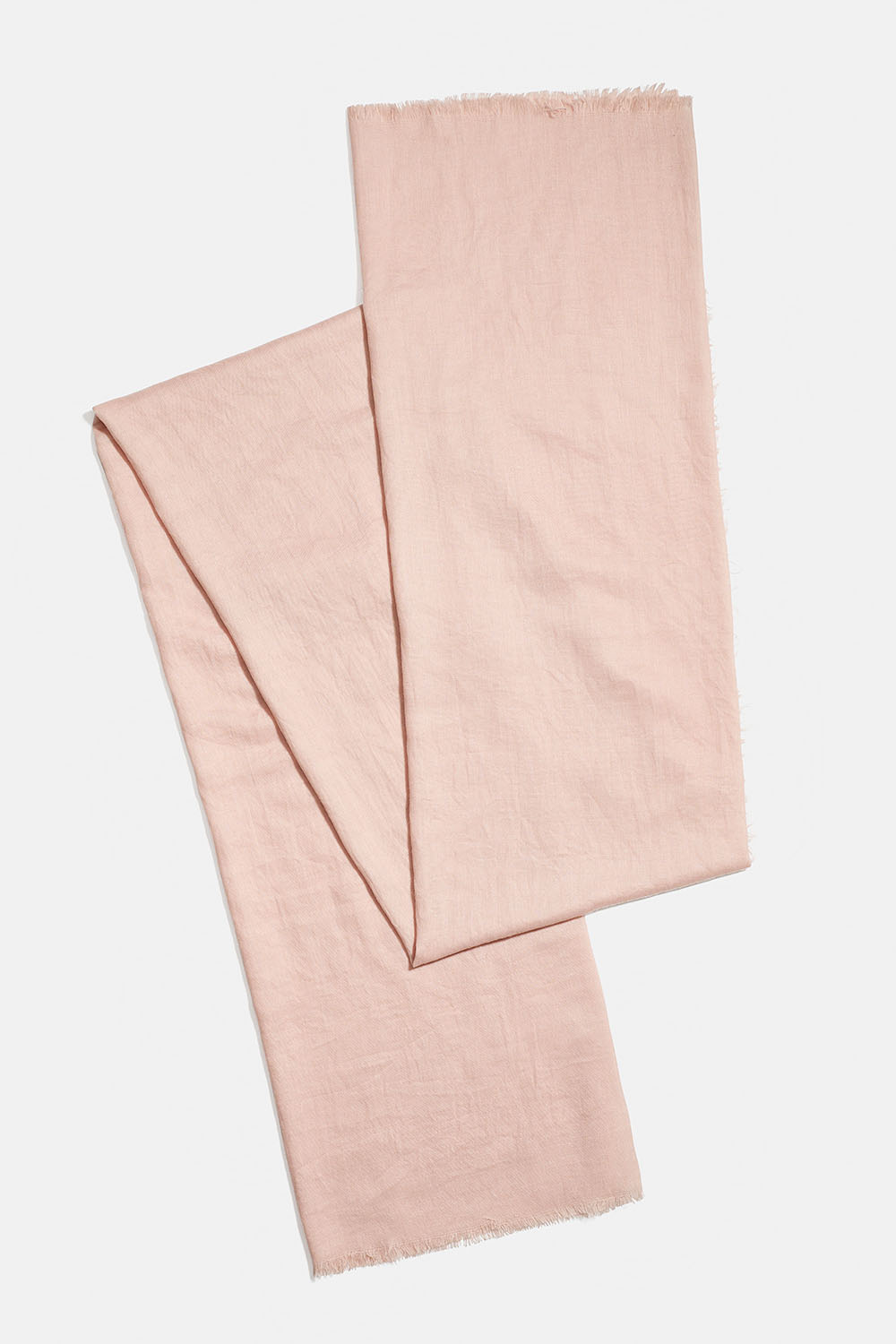 Lätt och mjuk rosa scarf. Scarfen är bred i modellen och lika skön att vira runt halsen som att bära över axlarna. Den är finstickad och lätt i materialet samt dekorerad med korta fransar längst sidorna.