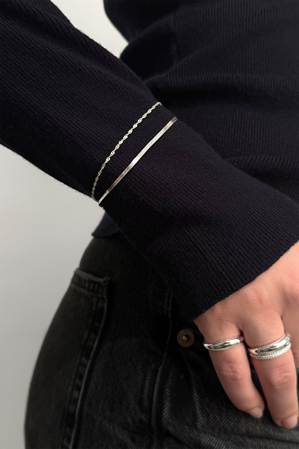Kedjearmband i äkta silver med tvinnad design. Ett tidlöst armband som enkelt kan matchas till alla din oufits, oavsett om du ska till jobbet eller fest.