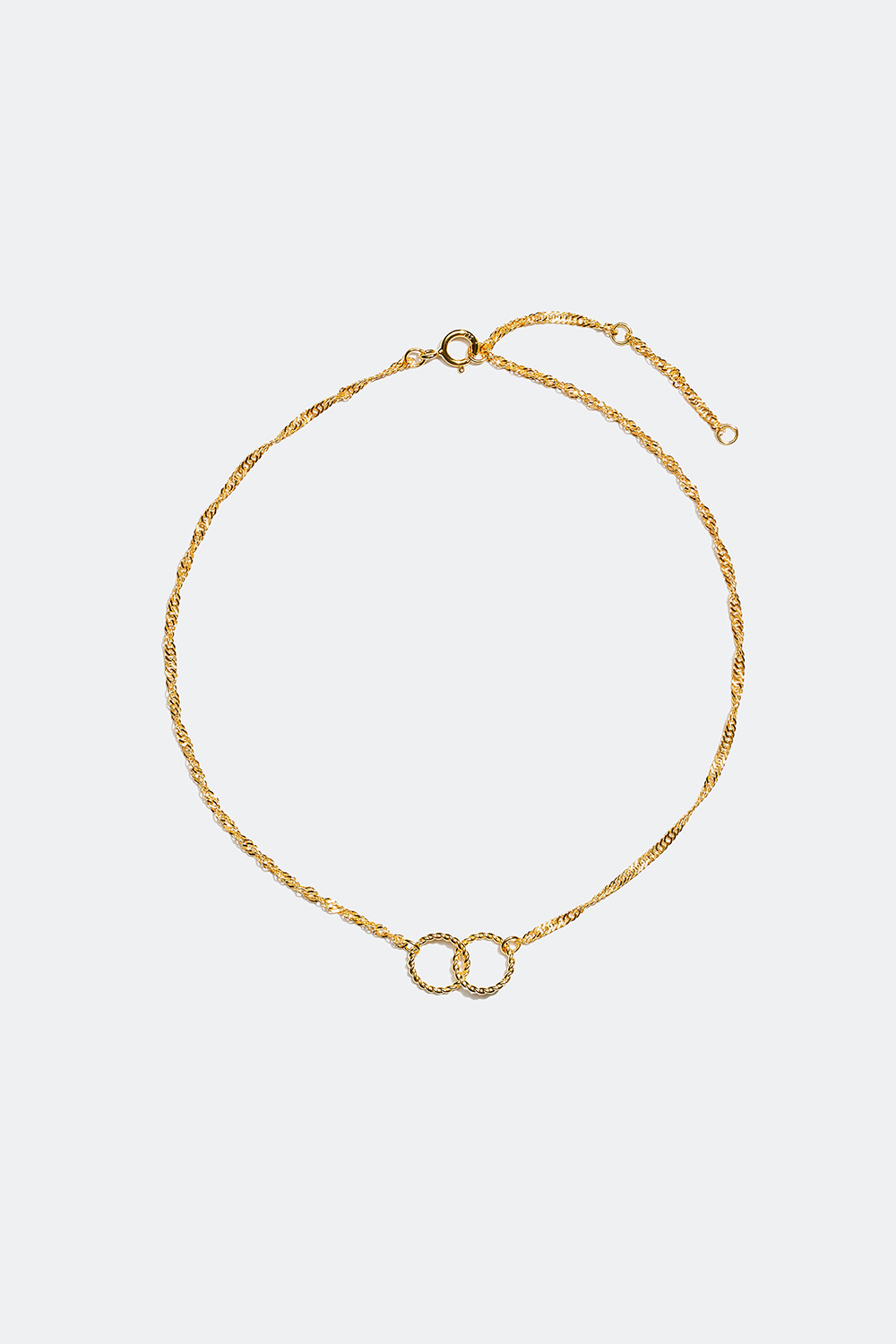 Fotlänk i 18k guldpläterat äkta silver med tunn vriden kedja och två ringar med tvinnad design.