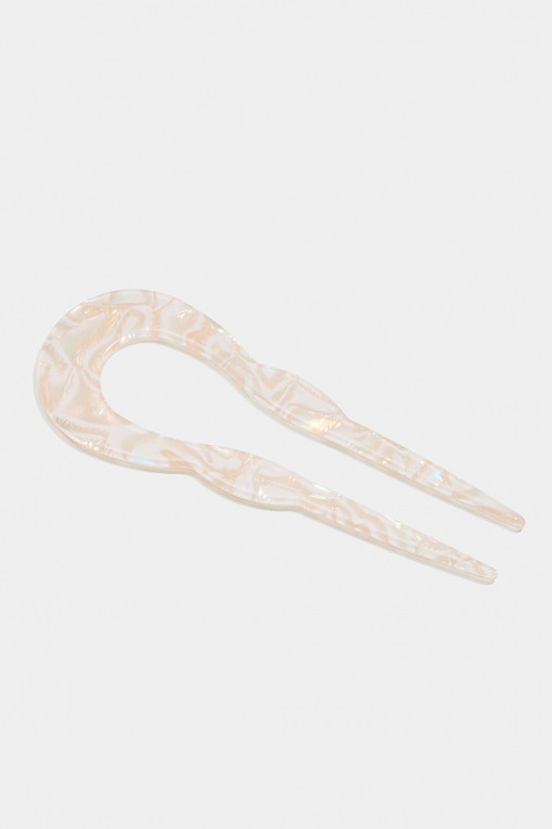 En skimrig beige, u-formad fransk hårnål i resin.