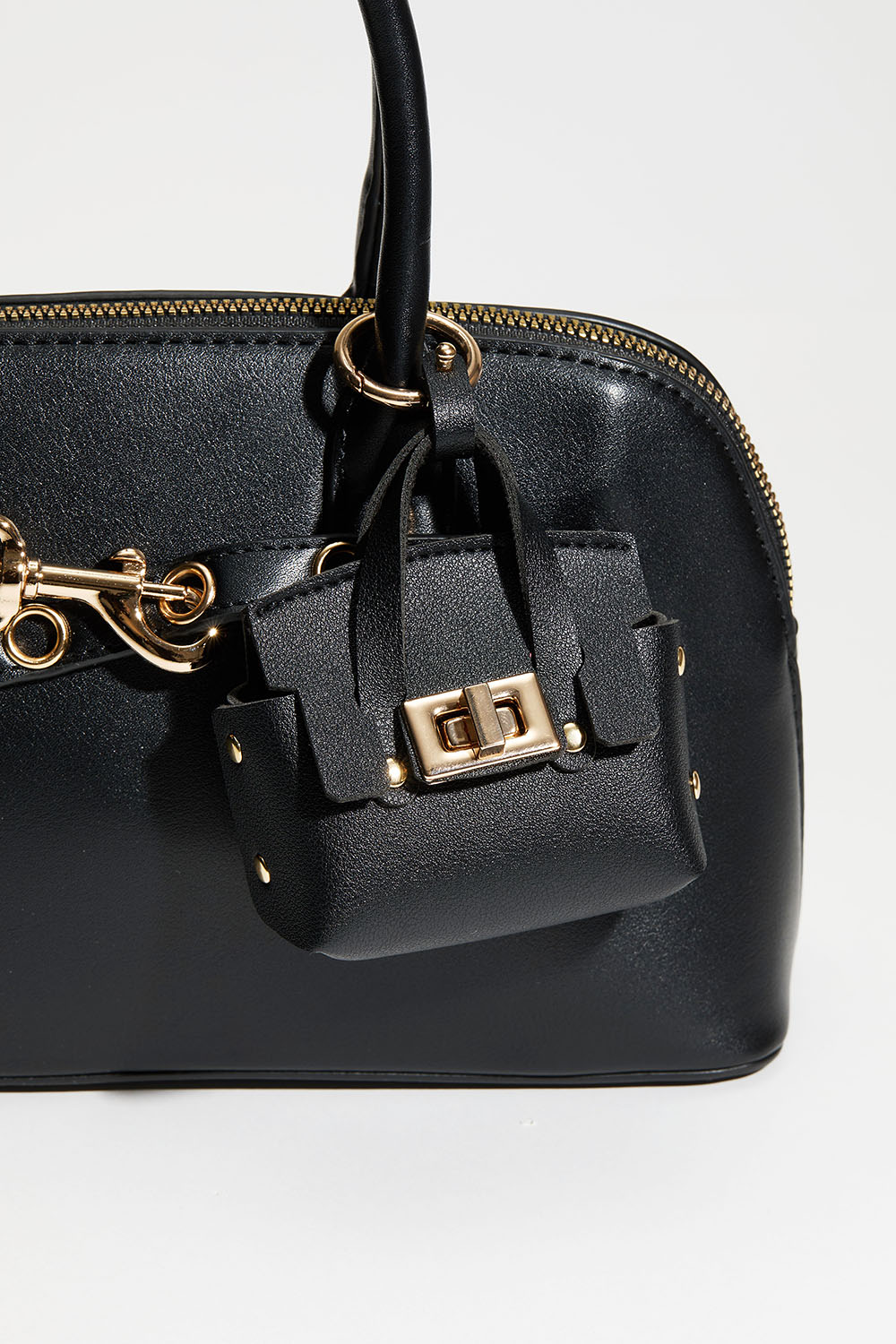 Väskdekoration med en liten svart väska. Går att fästa och klolås.