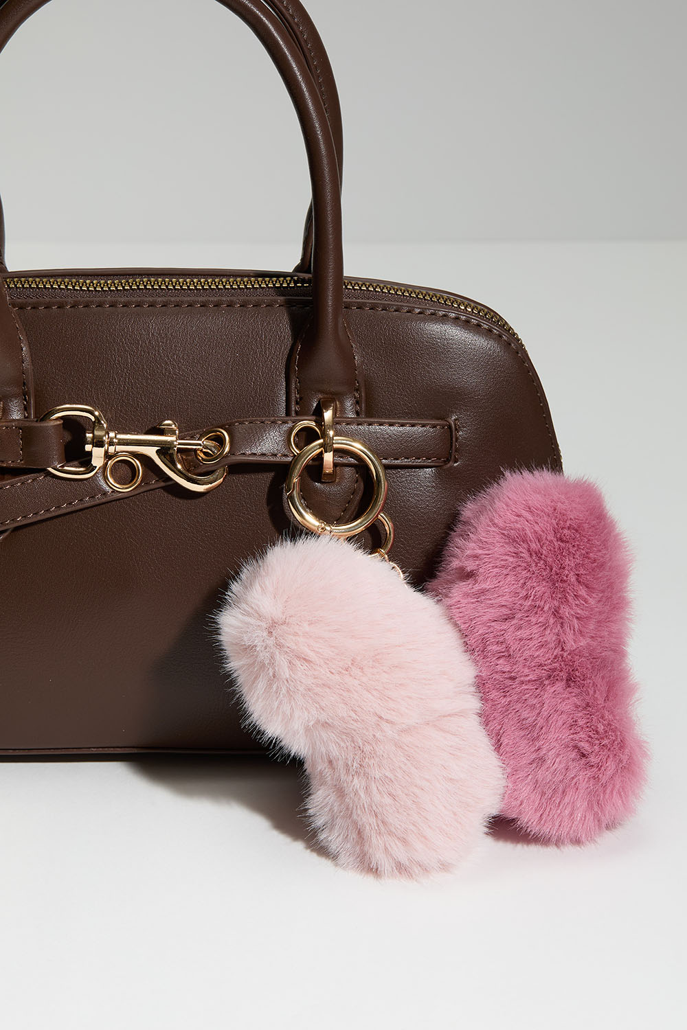 Väskdekoration med stor fluffig fjäril i ljus- och mörkrosa färg. Går att fästa och klolås.