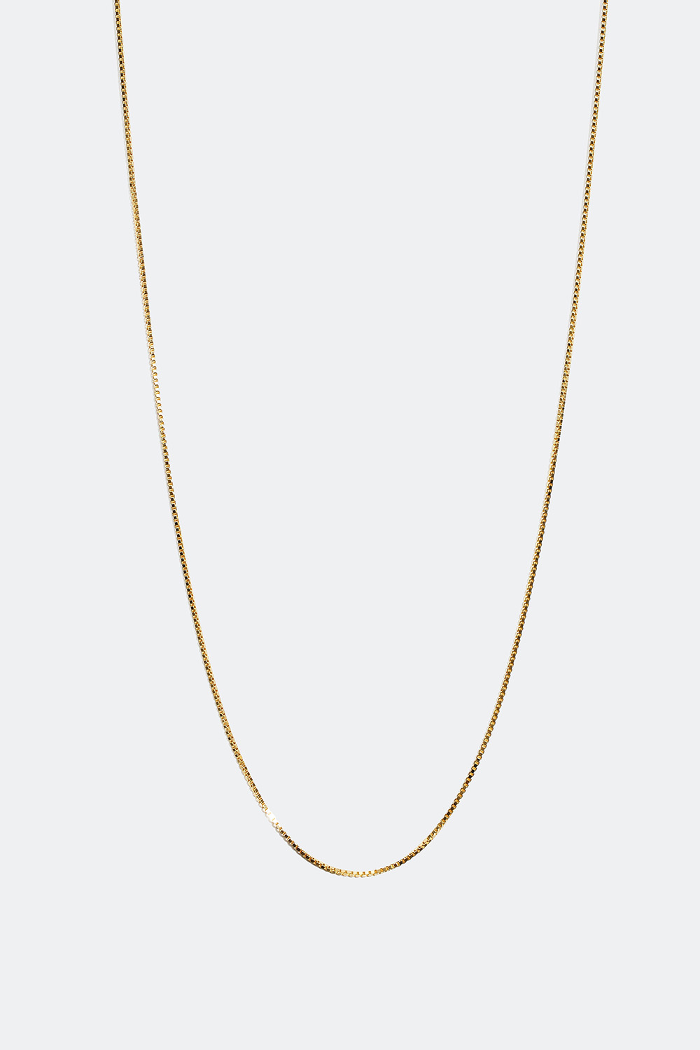 Tunn venetiansk halskedja i äkta silver förgyllt med 18 karat guld. En länk med fyrkantig design som är vacker att använda bara som den är. Perfekt halskedja till vardags som även går att kompletteras med berlocker eller kombinera med andra halsband för en lager-på-lager look. Halsbandet är 55 cm lång, men har en 5 cm förlängningskedja om man vill ha ett längre halsband.