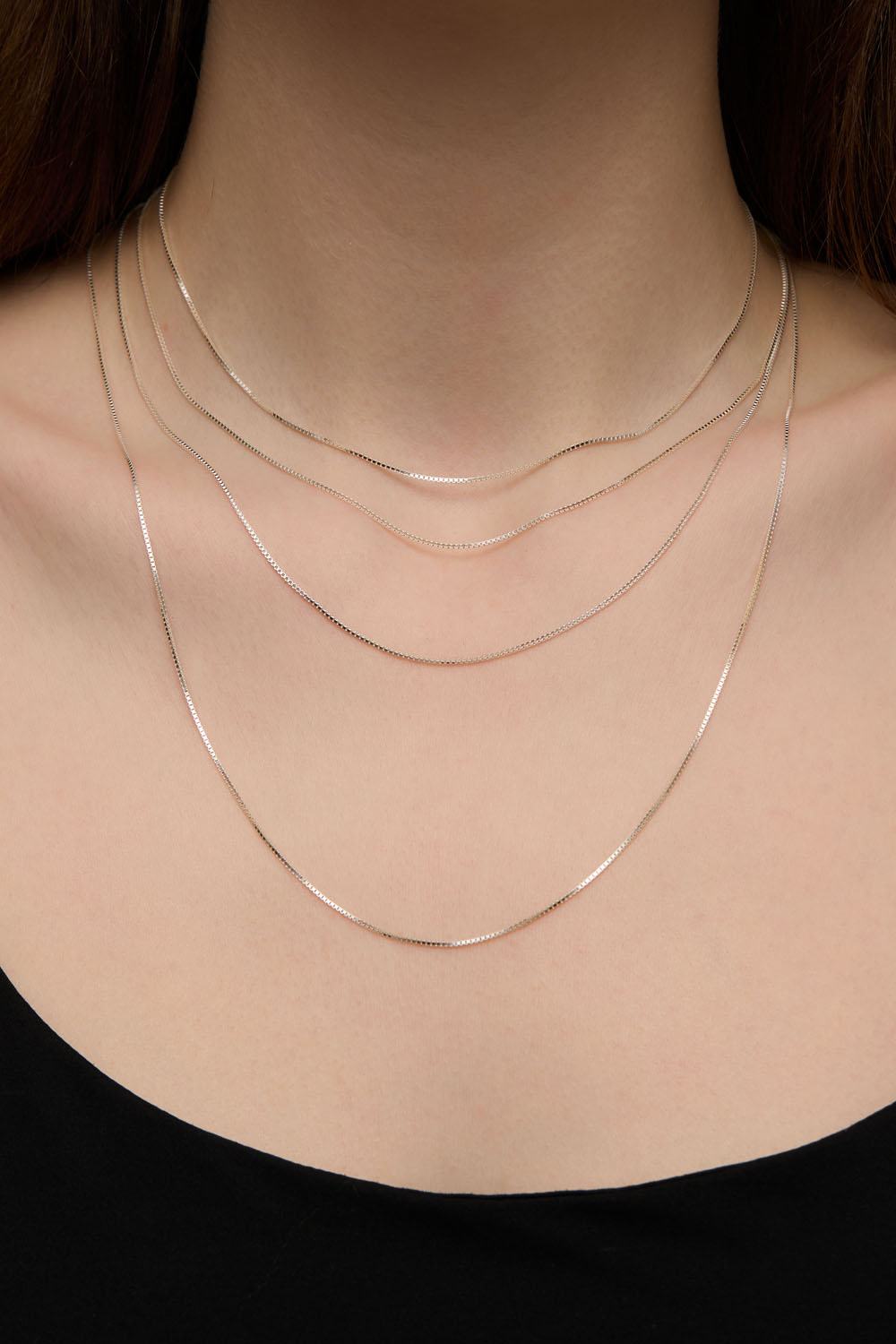Tunn venetiansk halskedja i äkta silver. En länk med fyrkantig design som är vacker att använda bara som den är. Perfekt halskedja till vardags som även går att kompletteras med berlocker eller kombinera med andra halsband för en lager-på-lager look.