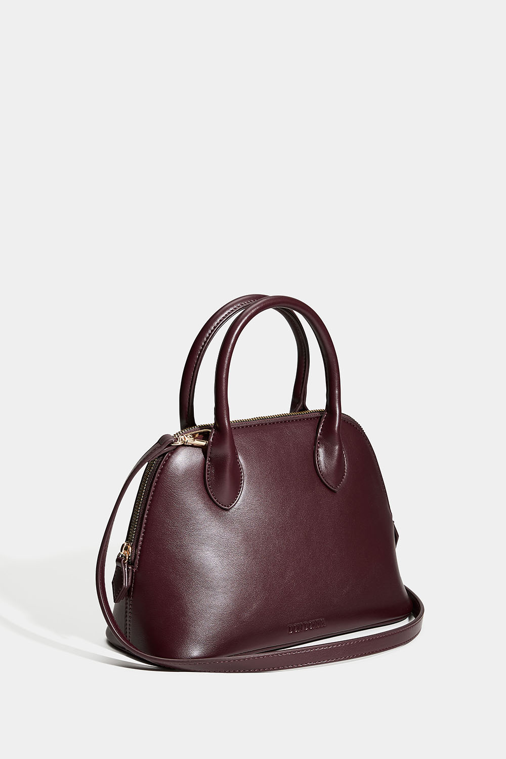 Bowlingväska i vinröd läderimitation med gulddetaljer och Don Donna-loggan präglad på ena sidan. Väskans stängs med dragkedja och har ett mindre extrafack på insidan som stängs med dragkedja. Väskan kommer med avtagbar axelrem så att man även kan bära den över axeln eller crossbody.