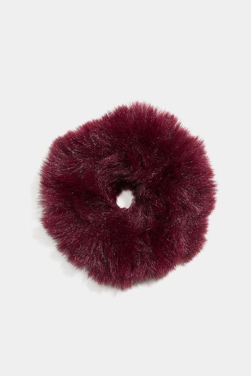 Mjuk och fluffig scrunchie i vinröd faux päls.