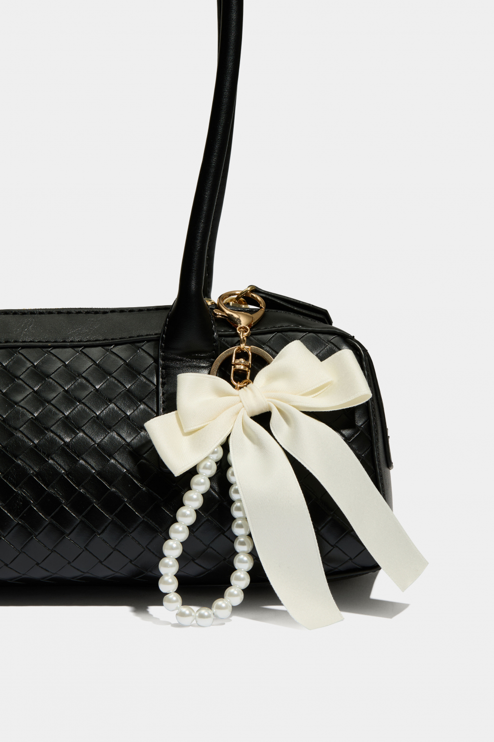 Väskdekoration med vit rosett och pärlband i gruppen Store week / 2537 hos Glitter (177000633100)