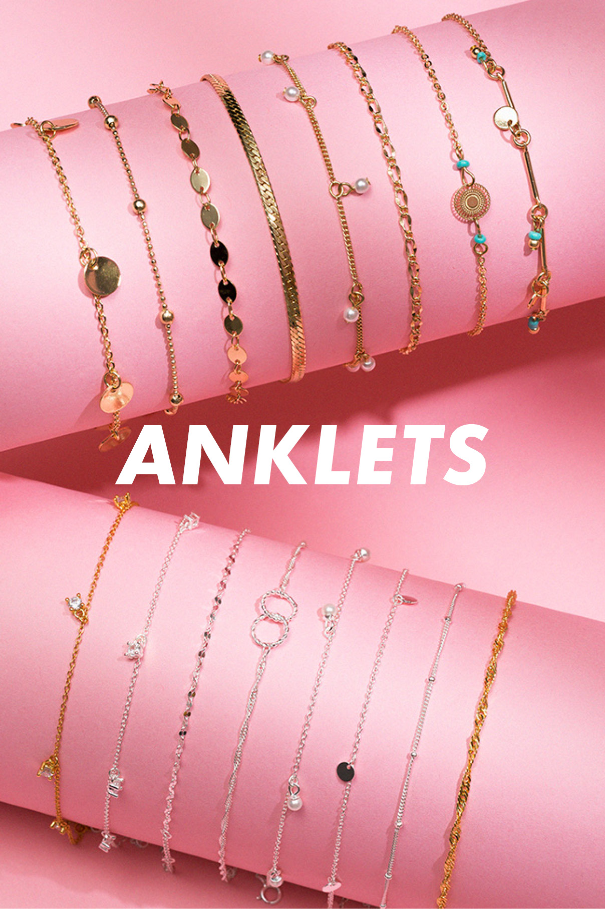 Fotlänk, ankelsmycke eller vristband - kärt barn har många namn! Fotens motsvarighet till armband är ett väldigt populärt smycke och passar perfekt till de kortare jeansen, klänningen eller kjolen. Här hittar du vårt utbud av den trendiga vår- och sommaraccessoaren som finns i både färgad metall, äkta silver och pläterat 18 k förgyllt silver.